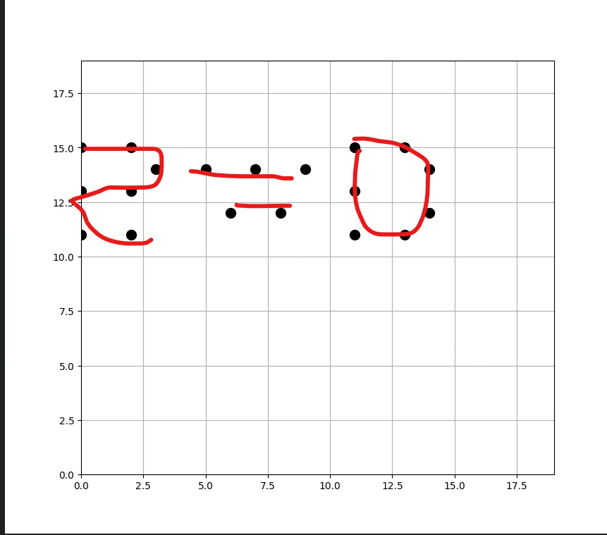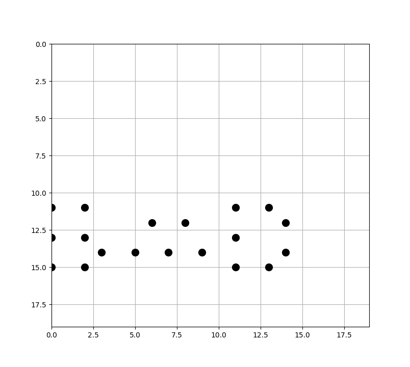 plt.xlim(0, 19) plt.ylim(0, 19) plt.gca().invert_yaxis() plt.grid(True) plt.show()