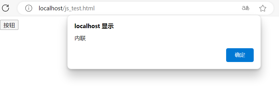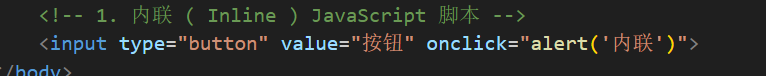 1 | <input type="button" value="按钮" onclick="alert('内联')"> |